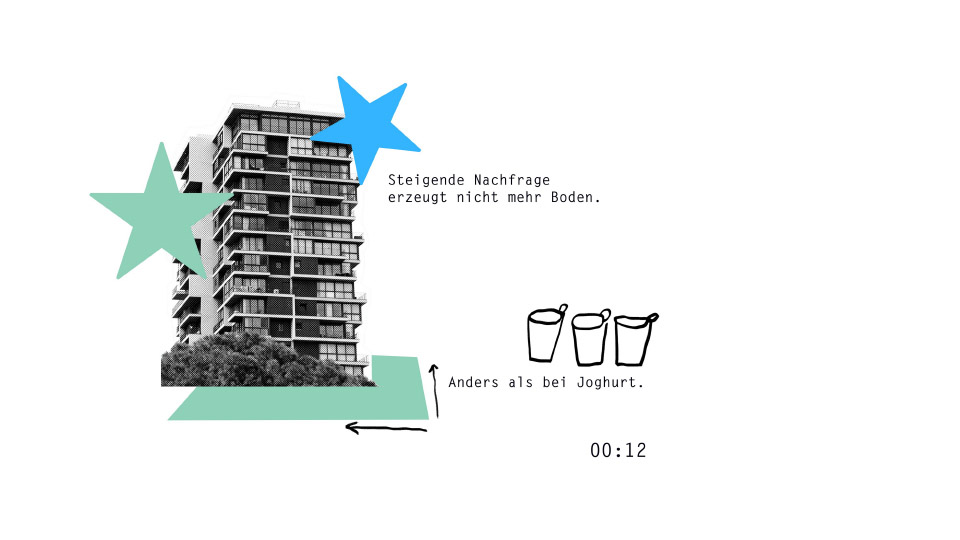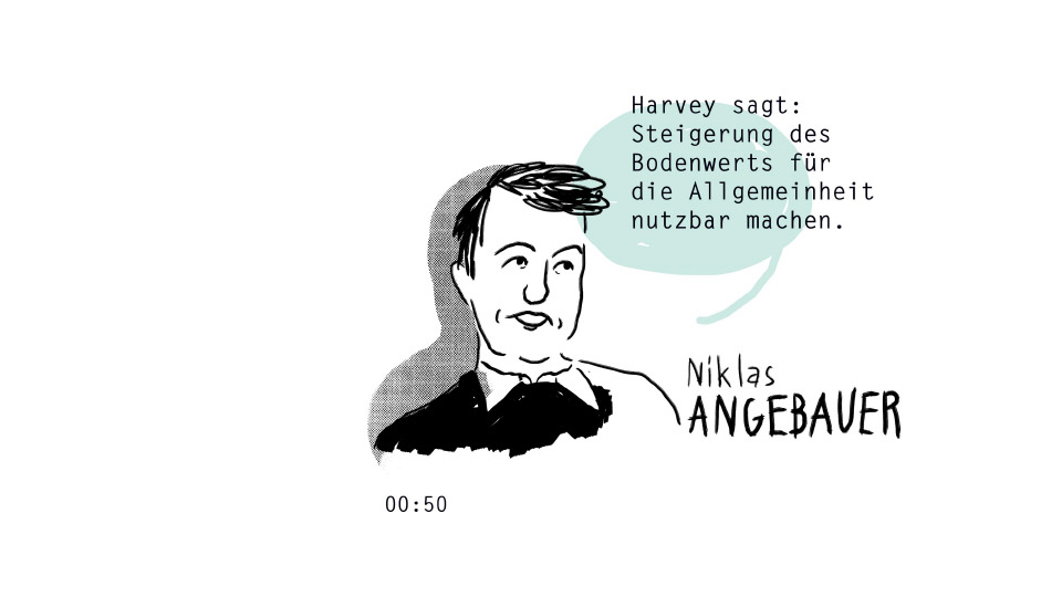 In der ersten Runde spricht der Philosoph Niklas Angebauer. Eigentum funktioniere heute häufig als Privileg, insbesondere beim Boden. Dieser gehört, erinnert Angebauer mit Jean- Jacques Rousseau, niemandem. Und doch entstehen mit ihm Wertsteigerungen ohne jede eigene Leistung, einfach weil Nachfrage steigt und Boden nicht vermehrbar ist. Anders als beim Joghurt. Die Bodenwertsteuer, die Angebauer als Konsequenz ins Spiel bringt, ist eine einfache Idee: Leistungslose Gewinne werden der Allgemeinheit zugänglich gemacht, so wie es die bayerische Verfassung in Art. 161 vorsieht. Angebauer schlägt vor, nicht mehr von Abschöpfung zu sprechen. Schließlich werden die Wertsteigerungen durch gesellschaftliche Leistungen erzeugt und stehen somit von vornherein der Gesellschaft zu.