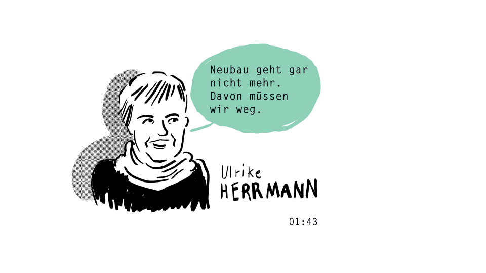In der zweiten Runde rückt Ulrike Herrmann das Thema Wachstum selbst ins Zentrum und macht kurzerhand Schluss damit. Klimaschutz, so ihre Diagnose, ist mit weiterem Wachstum schlicht nicht vereinbar. Auch nicht im Wohnungsbau.