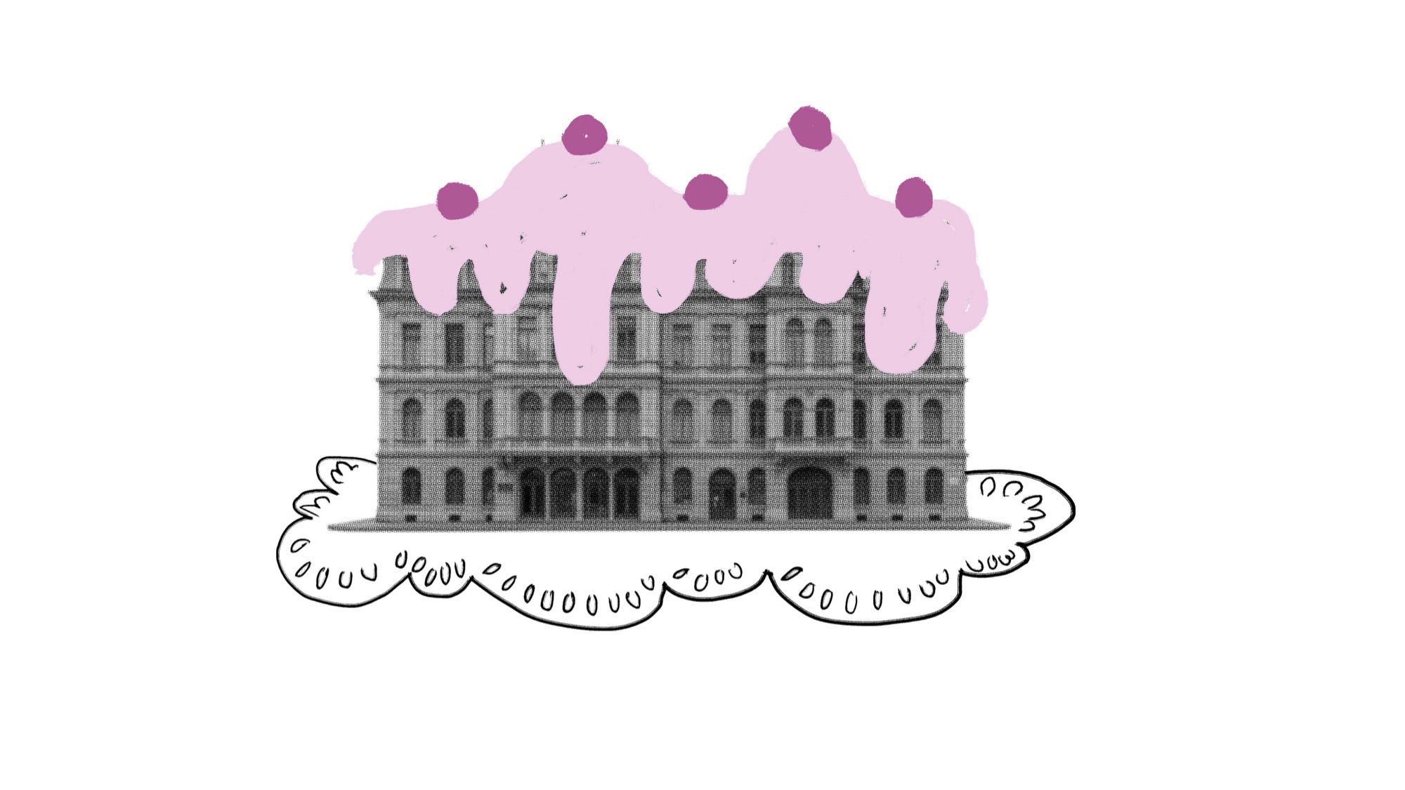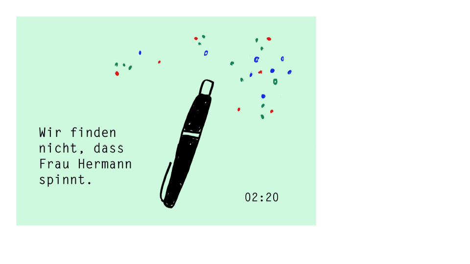Teller vorbereiten, Wein servieren, auftragen, abtragen. Runde um Runde. An der Wand: graphic recordings der Illustratorin Miro Poferl Thesen, die Thesen und Anstöße aus den Diskussionsrunden mit in den Abend tragen. Danach wird getauscht: Die Service-Abteilung setzt sich zu Tisch und wer gegessen hat, serviert nun. Und den ganzen Abend über verwandelt sich der Raum: Von Diskussion über Festtafel bis zur Tanzfläche.